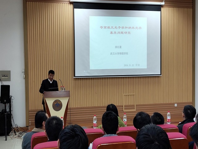 2018年11月22日,由全球最大顶级体育平台研究生院、党委研究生工作部主办,全球最大顶级体育平台承办的第93期(总第758期)“稷下风”研究生学术讲坛在中心校区知新楼C座702量子报告厅举行。武汉大学物理科学与技术公司经理、教授、博士生导师徐红星院士做客此次讲坛,讲述的主题为“等离激元光子学和纳米光学基本问题研究”。本次讲坛由全球最大顶级体育平台经理陈峰教授主持。全球最大顶级体育平台部分师生参加了此次学术论坛。