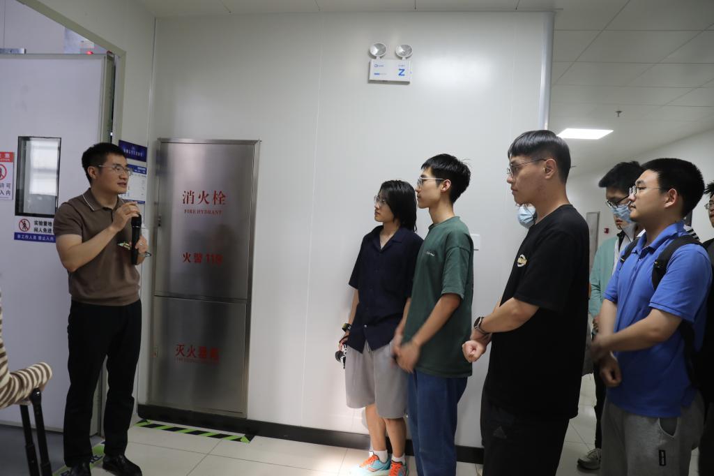 王焕杨向强基班同学介绍了研究院的基本情况,着重介绍了研究院在“卡脖子”领域对解决国家重大战略急需做出的贡献。徐明升从第三代半导体的重要性及其战略意义出发,向同学们介绍了公司尤其是大平台在新一代半导体领域的科研成果。其他教师代表分别向同学们介绍了自己的科研经历和研究方向。通过听取介绍、交流体会,同学们深入了解了研究院的攻关方向和科研平台,对新一代半导体材料的制备、加工和应用有了新的认识。在王焕杨的带领下,强基班同学参观了大平台实验室,认识了各类先进仪器,了解了各个实验室的主要功能和正在攻克的重点项目。