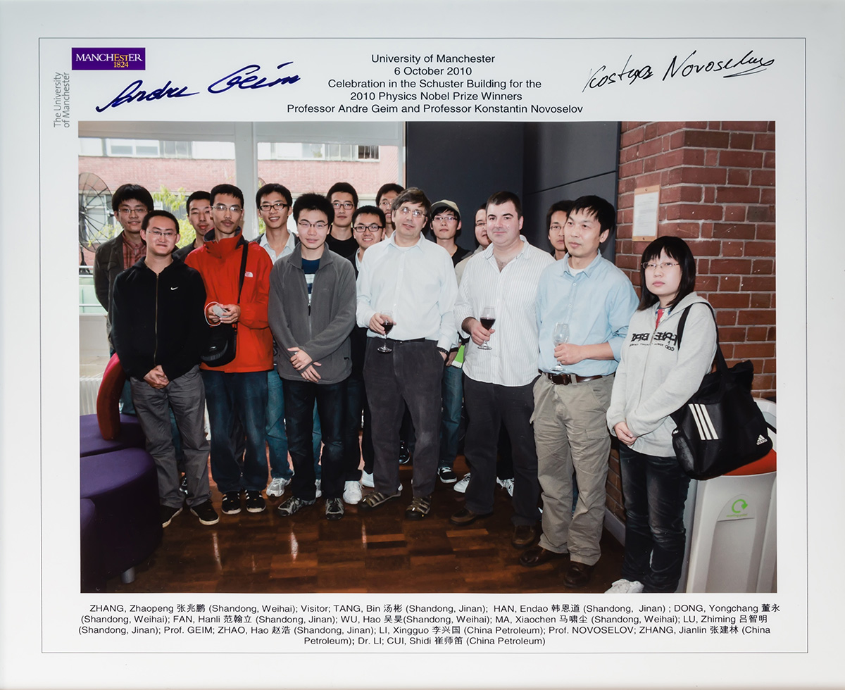 海外交流项目员工在曼彻斯特大学与2010年诺贝尔物理学奖获得者合影