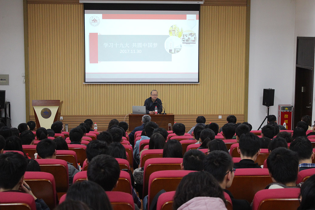 周金龙首先介绍了党的代表大会基础知识和党的十九大概况,结合个人学习体会就党的十九大提出的新判断、新使命、新思想、新征程、新要求进行了阐述。他重点阐述了党的十九大报告中对我国发展历史方位的新判断——中国特色社会主义进入新时代。借助相关案例,对我国发展历史方位的曲折认识过程等问题进行了详细阐述。随后,他从中国奇迹与中国方案两个方面介绍了中国自改革开放以来取得的巨大进步,阐述了习近平新时代中国特色社会主义思想并详细说明了新思想的形成条件、主要内容及历史地位,帮助大家对习近平新时代中国特色社会主义思想有了更加深入的了解和思考。最后,他对坚定不移全面从严治党,不断提升党的执政能力和领导水平进行了进一步的阐述。