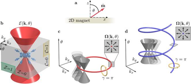 该工作提出了基于二维铁磁体的混合拓扑半金属(mixed topological semimetals)的新概念。研究发现,自旋方向对二维体系的拓扑性质具有有效的调控作用,因此,本研究将自旋方向与二维动量空间相结合,够成三维混合空间,并在该混合空间中理论证明了拓扑半金属实现的可能性。此外,由于体系中对称性的不同,能带交叉点又可呈现出不同的维度,即分别实现了零维的混合外尔半金属和一维的混合节线半金属。研究结果大大拓展了人们对二维拓扑半金属的理解和认识,同时在新型拓扑量子器件的设计中也具有重要的应用价值。