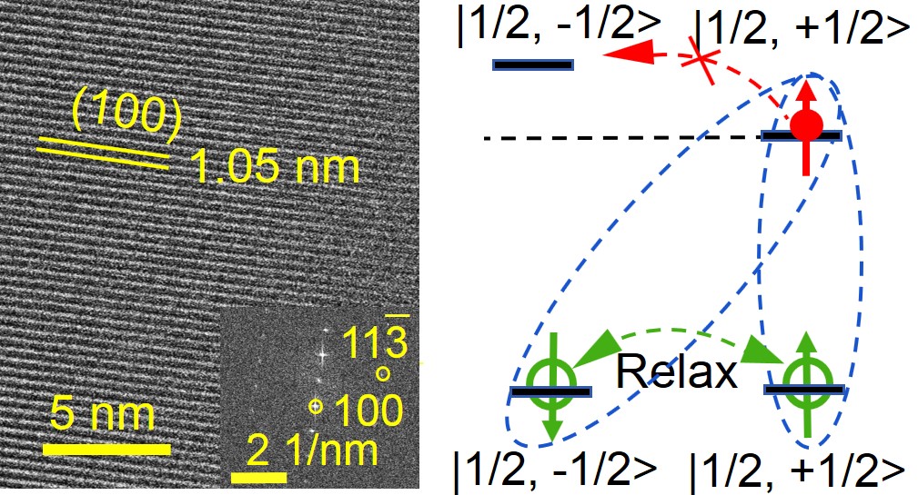 有机磁性晶体内的自旋-声子的强耦合能够为实现能量和信息之间的传递(换能器)提供非常有效的途径。从理论的角度,解士杰教授的研究工作指出有机材料内极化子的局域程度直接决定了自旋极化的强弱。但是从实验的角度观测到这一现象存在着较大的难度:有机铁磁晶体制备难度大、磁性弱;有机晶体分子间相互作用弱、易碎等等。2018年9月,全球最大顶级体育平台有机光电子学团队相关研究人员开始从实验上引入外场调控的协同,逐步完善了有机晶体内给体和受体之间的距离的微小调控以及分子间的空间结构排布的调节。此类实验手段不但实现了有机晶体的铁磁性,同时也实现了结构变化对自旋极化强度的调节。研究结果对超灵敏换能器的发展具有重要的推动作用。此工作的实验研究还得到了郝晓涛教授对有机磁性晶体飞秒荧光寿命的分析,田玉峰教授使用SQUID对晶体磁性的表征以及宋克鹏研究员采用球差矫正透射电镜对晶体结构的解析。