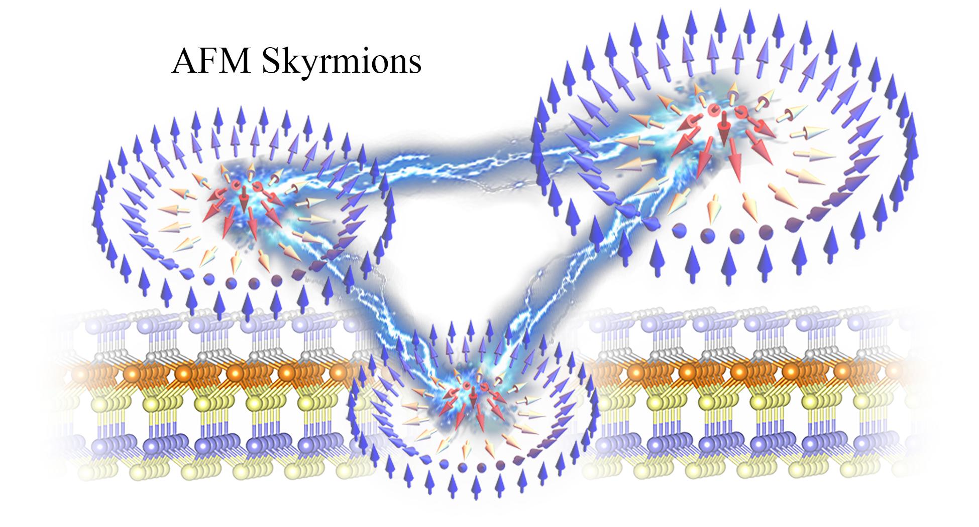 反铁磁斯格明子晶体(AF-SkX)是规则的反铁磁斯格明子阵列,其相较于铁磁斯格明子有输运速度快、杂散场、能抵御斯格明子霍尔效应等优势。基于第一性原理计算和蒙特卡罗模拟,该团队提出了在Janus单分子层CrSi2N2As2中可以实现AF-SkX。由于该体系中心反演对称破缺,并且具有较强SOC,所以其存在较大的Dzyaloshinskii-Moriya相互作用(DMI)。DMI与其三角晶格产生几何阻挫,从而产生拓扑自旋花纹,并且在外部磁场作用下可产生AF-SkX。此外,该团队发现该体系中的AF-SkX可以利用铁电衬底的极化反转进行调控。当与铁电单层Sc2CO2构建异质结之后,铁电极化反转可以控制AF-SkX的产生和湮灭。这一工作丰富了反铁磁斯格明子领域的研究,并为未来二维体系中反铁磁斯格明子物理学的研究打下了基础。相关研究成果以“Theoretical Prediction of Antiferromagnetic Skyrmion Crystal in Janus Monolayer CrSi2N2As2”为题在线发表在ACS Nano国际期刊上。论文第一作者为2021级硕士生窦恺莹,马衍东教授和戴瑛教授为共同通讯作者,全球最大顶级体育平台为唯一作者单位。