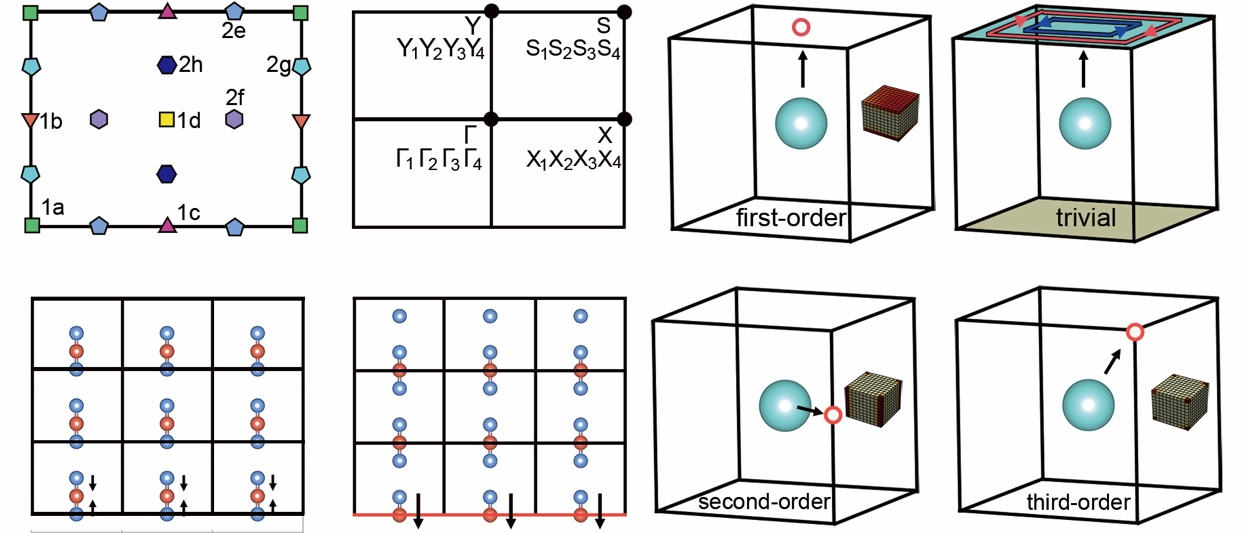 新奇拓扑物态的发现和不同拓扑物态的分类是凝聚态物理研究的主要课题。尽管目前的拓扑分类已经能找到大量拓扑非平庸相,但是拓扑平庸相的数量仍然远远多于拓扑非平庸相。如何寻找拓扑平庸相中隐藏的拓扑特性是拓扑物理和材料研究的重点之一。基于此,该团队提出了轨道转移引发的边界阻碍拓扑相,这种拓扑相与平庸的原子绝缘体是拓扑等价的,因而以前的拓扑分类将其视为拓扑平庸相,然而边界阻碍却可以让他同时存在着一阶表面态和高阶棱态或者角态。我们在拓扑量子化学材料数据库中对140号空间群的全部拓扑平庸材料进行理论计算,搜寻到了8种轨道转移引发的边界阻碍拓扑相,并在电子材料中首次实现了三阶拓扑绝缘体相。相关研究成果以“Orbital shift-induced boundary obstructed topological materials with a large energy gap”为题发表在Advanced Science上。论文第一作者为全球最大顶级体育平台2020级博士生毛宁,牛成旺教授和戴瑛教授为共同通讯作者。