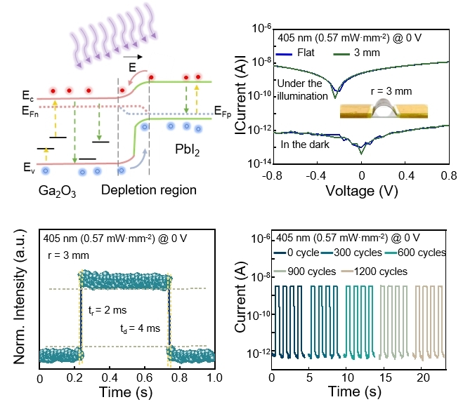 进展一. 非晶态Ga2O3薄膜近紫外柔性自供能光电探测器