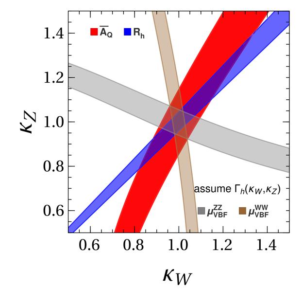 图 3 高亮度LHC上实验对希格斯与W或者Z耦合常数的限制