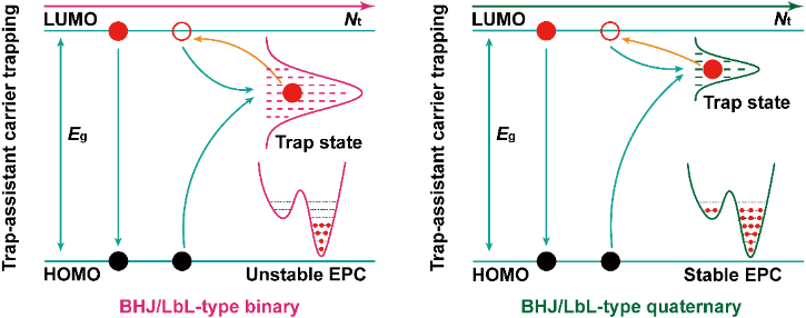 有机太阳电池作为新型光伏技术的一个重要组成部分,其光电转换效率已经超过19%,具有广阔的应用前景。有机光伏器件中非富勒烯受体的聚集行为可能改变电-声耦合以及能带结构,并进一步影响有机半导体中的光生激子和载流子动力学,从而限制有机光伏器件长期工作的稳定性。因此,揭示非富勒烯有机太阳电池衰减过程中电-声耦合的变化及其与激子和载流子动力学的关联对深入理解衰减机理具有重要意义。