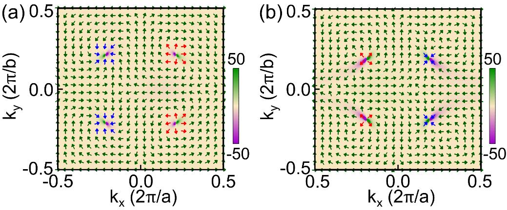 进展二:材料的拓扑分类不止存在于绝缘体,还可以推广到无能隙的体系,如外尔半金属等。磁性外尔半金属因其融合了磁性和能带拓扑之间复杂的相互作用,引起了人们极大的研究兴趣。戴瑛教授团队理论预测了一类本征的铁磁外尔半金属BaCrSe2,其在费米能级附近的能带结构较为简单,在整个布里渊区中仅有四对外尔点,有利于对外尔点相关输运现象的观测。与以往报道的外尔半金属不同,BaCrSe2的外尔点之间的距离非常远,为倒格矢长度的一半,因此BaCrSe2中的外尔点具有强鲁棒性,不易因微扰导致的点位移而湮灭。对表面态费米弧的研究进一步证明了BaCrSe2的高度稳定的铁磁外尔半金属相,对于外尔半金属基本物性的理解及其潜在应用具有重要意义。相关研究成果以“Magnetic Weyl Semimetal in BaCrSe2 with Long-Distance Distribution of Weyl Points”为题发表在Advanced Science国际期刊上。论文第一作者为2020级硕士生孙文丽,牛成旺教授和戴瑛教授为共同通讯作者,全球最大顶级体育平台为唯一作者单位。