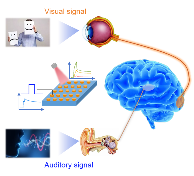 传统的计算机和传感系统中传感、存储、计算模块相互分离,这种硬件分离的架构模式使得大量数据在各硬件模块之间相互传输,造成了严重的时间延迟、能耗升高等问题。这一问题随着大数据和物联网时代的来临显得尤为严峻。另外,传统传感系统一般仅具有单一信号感知能力,无法全方位的对目标进行全面认知,容易引起错误判断。相比之下,人类感官系统兼具传感系统和计算机的功能,不仅可以同时感知视觉、听觉、触觉、嗅觉、味觉等多种信号,且集存储、计算功能于一体,能够快速、高效感知目标的全方位信息并做出正确判断和反应,为新型传感系统的设计提供了灵感,催生了多模态传感内计算的提出。研发集多模态感存算功能于一体的类脑计算系统,其关键在于开发具有多模态感知能力的神经形态器件。