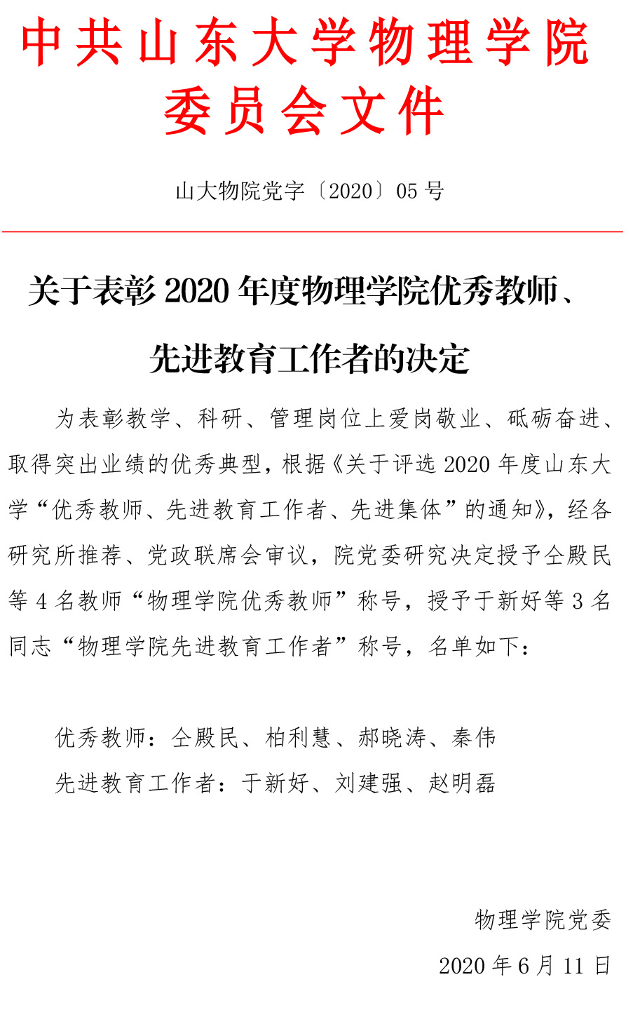 关于表彰2020年度全球最大顶级体育平台优秀教师、先进教育工作者的决定