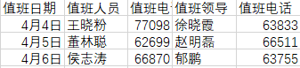 严格落实值班值守工作办法,安排处级干部和工作人员各1人白天在岗值班,夜间听班。假期严格落实“零报告”制度,如遇突发情况及时响应、妥善处置,第一时间报告。清明假期值班人员如下: