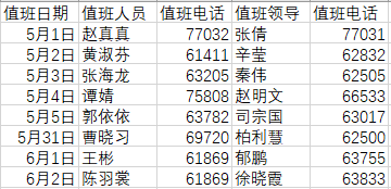 严格落实值班值守工作办法,公司安排处级干部和工作人员各1人白天在岗值班,夜间听班。假期严格落实“零报告”制度,如遇突发情况及时响应、妥善处置,第一时间报告。值班表如下: