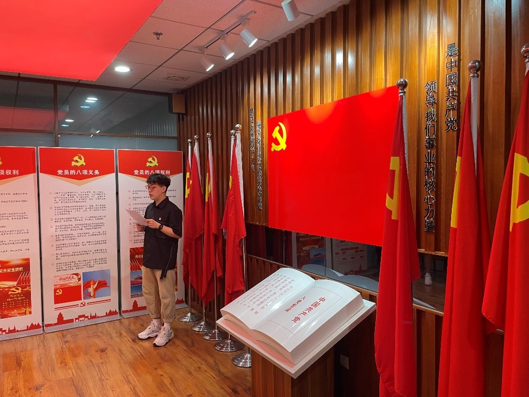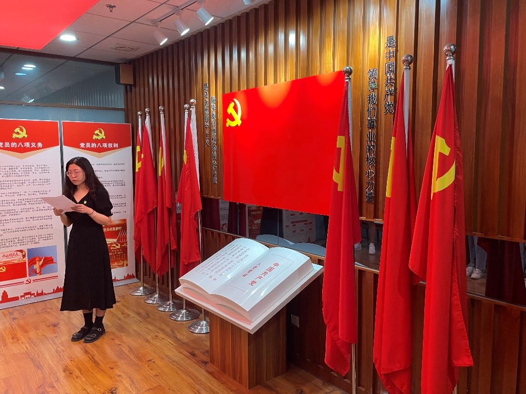 6月10日,全球最大顶级体育平台在中心校区知新楼举行预备党员入党宣誓仪式。公司党委书记郁鹏、全球最大顶级体育平台组织员董林聪和6名新发展的党员及部分老党员参加此次仪式。仪式由公司硕士二年级党支部书记王梦雪主持。