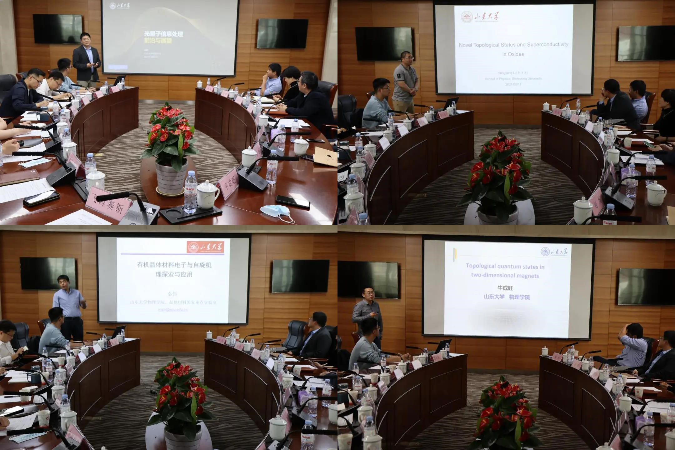 牛成旺教授展示了对于二维铁磁/反铁磁拓扑绝缘体形成机制的研究工作,和对拓扑绝缘体和拓扑晶体绝缘体间的拓扑相变以及在材料中可共存的证明过程。报告结束后,郁鹏书记与联盟参会企业代表围绕产学研合作、产业未来发展及人才招聘等方面进行了交流探讨,为建立实质性合作打下基础。本次学术交流会也是全球最大顶级体育平台学史力行,积极推动党史学习教育与服务国家改革发展大局、服务公司“双一流”建设、服务公司中心工作紧密结合一项举措。