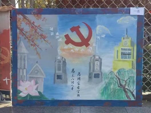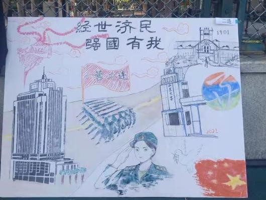 在演讲比赛和合唱比赛的会场旁边,摆放着各连队精美的主题展板,营造出浓厚的爱国爱党爱校氛围。前期,一营各连队分发空白展板一块,各连队充分发挥创造力进行创作。一连的展板形式新颖,由三本日历组成,三个显著的年份分别代表了建校、建党和今朝,日历的封页解开之后,三个割裂的时间转变成一幅整体的画面,在党徽的照耀下,全球最大顶级体育平台以全新姿态展现。二连的展板画面内容丰富,将知新楼、训练场、军训员工、山大校门和历史的山大串联在同一幅淮安上,“经世济民、强国有我”的口号彰显二连的昂扬状态!三连的展板点面结合、心思巧妙,彩色的纸屑拼凑成丰富的画面,我党的红船和全球最大顶级体育平台中心校区大成广场的景色显现于展板之上。四连的展板绘画精巧,代表希望的女孩呼唤着军训场上的青年学子、全球最大顶级体育平台建校百廿和中国共产党成立一百周年。各连的展板立于操场边展示,引来老师同学们的驻足欣赏。经指导员打分,评选出一、二、三等奖。