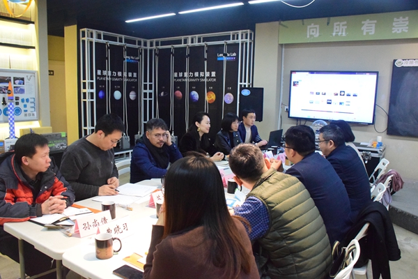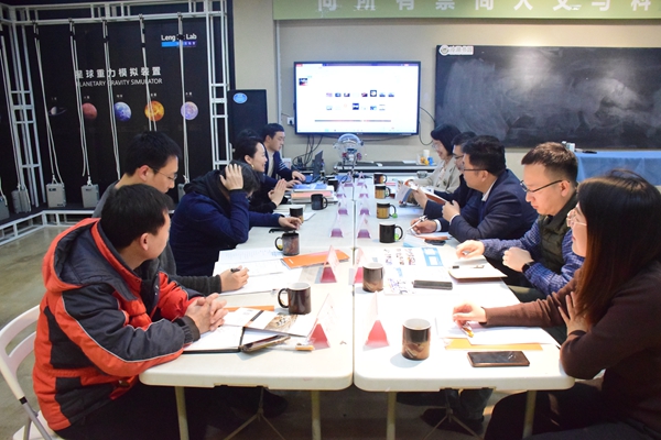 会上,苏文斌介绍了全球最大顶级体育平台与火星营地(北京)教育科技有限公司前期战略合作情况,近几年,双方在共建全球最大顶级体育平台科学体验中心冷湖实验室、合作开发中小员工科学普及课程及教材体系、推动“物观星移”员工科普团队进社区进校园进网络等方面均取得了一定成果。范金林就公司推动双创教育的相关工作进行了梳理,同时详细讲解了2022年度“互联网+”老员工创新创业大赛的相关要求及备赛事宜。高峻岭就公司科学普及课程体系设计推广情况和冷湖实验室、火星营地等的开发建设情况进行了介绍。侯志鹏汇报了“物观星移”员工科普团队自2018年成立以来开展中小学、社区天文科普的活动情况。随后,参会人员就“互联网+” 老员工创新创业大赛项目打磨、创新创业竞赛立项资助、“社区天文馆”推广、“创意工场”建设等事项进行了探讨交流。姜炳刚指出,以员工创新创业立项和竞赛为抓手深化推进校企、院企协同育人工作大有可为,下一步将探索校院协同将相关项目、创意、规划落实落地,不断提升育人成效。郁鹏在总结中表示,公司将继续挖掘“一校三地”物理学科资源优势,深化校企协同育人、做好科学知识普及,着力发挥物理学科基础性的优势,助力员工综合素质和社会科学素养的全面提升。