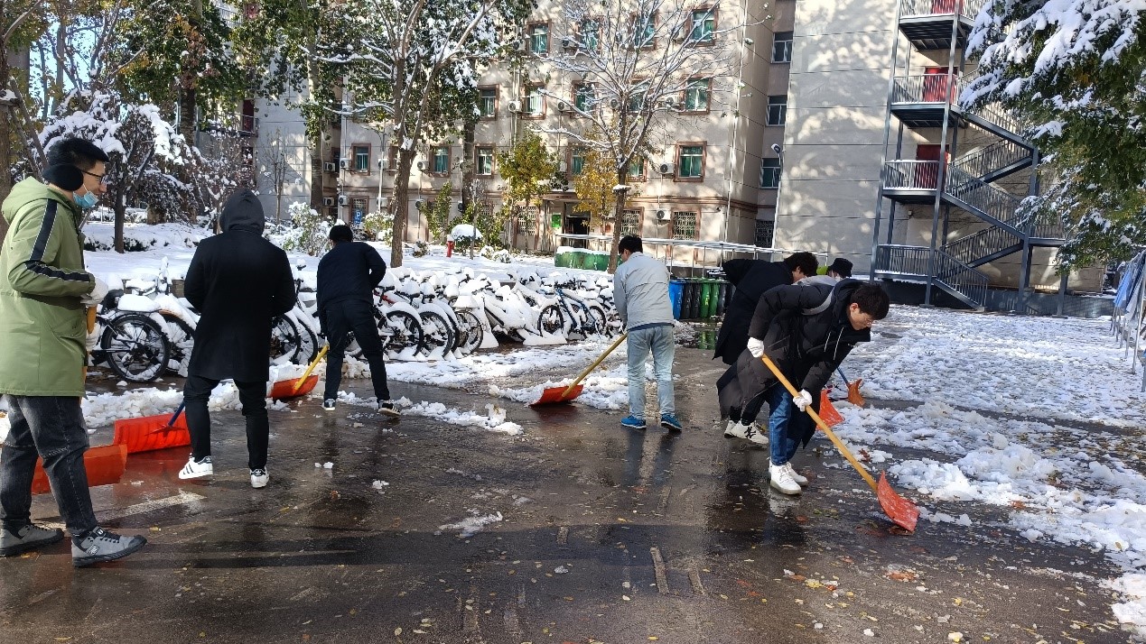 室外的低温拦不住同学们扫雪的热情,寒风的凛冽遮不住一颗颗火热赤子之心。作为先锋模范,党团骨干迎难而上,带领大家团结协作、奋勇争先,圆满完成了本次清雪除冰活动,展现了物院学子积极向上的良好风貌和责任担当,彰显了物院学子热心奉献的志愿精神与吃苦耐劳的优秀品格。