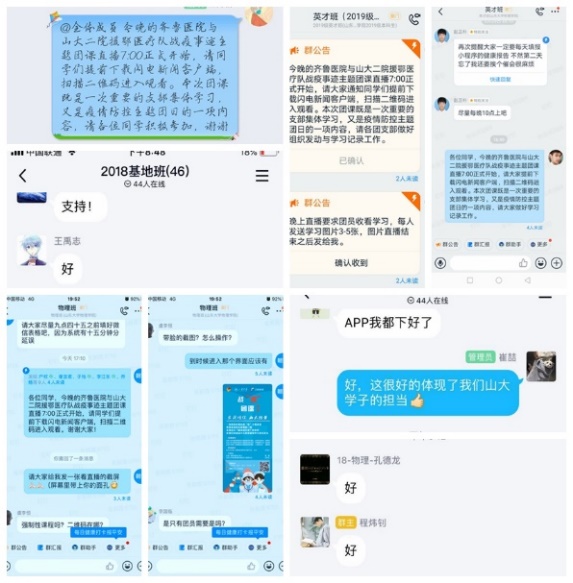 2018级基地班团支部崔喆:通过此次团课,我收获良多,感慨万千。被广大奋战在一线的医护人员舍小我为大家,无私奉献的精神深深感动,也为医护人员“除人类之病痛,助健康之完美”的坚定决心而心潮澎湃。相信一定会像习近平总书记所言,我们完全有信心、有能力打赢这场疫情防控阻击战!