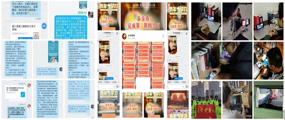 做好物院在鄂员工临时团支部团员的组织动员工作,号召临时团支部团员积极参与线上学习讨论、互动交流,分享战“疫”抗“疫”心得,开展结伴学习互助,展现在鄂青年团员的良好精神风貌。黄同学说,“咸宁虽然已经连续20多天没有新增了,管控依然没有松懈。我相信,这才是对人民负责的政府的严谨态度,每一个中国人都在2020这个‘年’中团结在了一起”。吴同学说,“此次防控疫情,我最大的感触就是国家强大的动员能力。疫情期间,大家也都很理性、很乐观,都能在家做好居家生活,支持国家的决定。越是艰难时期,我们越是能深刻的感觉到每个中国人都紧紧的团结在一起。”周同学说,“作为生于斯长于斯的武汉伢从未见过武汉如此的寂静,此次疫情也更让我珍惜日常生活的那份平静。门口的油菜花和月季花都开了,春天来了,一切都充满希望,一起加油!”张同学说,“这段时间基本一直宅在家里,最大的感触就是我们生在伟大的中国,生在一个和平富强的年代,真的很幸运”。柯同学说,“在这场众志成城、同仇敌忾的战斗中,中国人民的团结信念和责任感令世界印象深刻。这也从侧面体现了我国社会主义制度的优势和中华民族的强大精神。”
