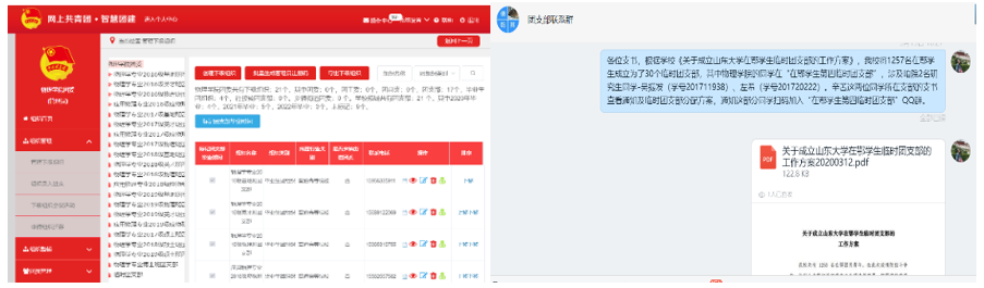 开展“智慧团建”线上团支部、团员摸底排查工作,组织全院各团支部完善支部信息、清查团员数量,夯实组织基础,厘清系统基数。部署动员2020年团支部“达标升级”工作,要求各支部按照公司工作要求开展自我评估,整理相关档案材料。联合各员工党支部,着力做好新学期线上“推优入党”动员工作,号召物院青年团员向防控疫情期间涌现的先进党员学习,用实际行动向党组织靠拢。
