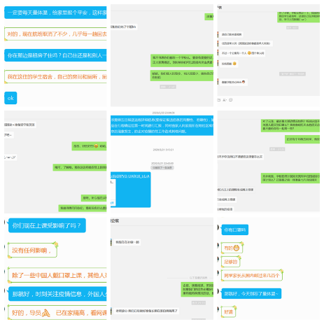 做好海外交流员工人文关怀。通过QQ、微信、钉钉等多种渠道与每个海外交流员工保持密切联系,实时关注他们的学习进展、住宿情况、情绪状态、物资储备等,积极向员工传达公司、公司期待所有同学安全健康、学成归来的美好祝福。及时回应并帮助解决员工的困难和需求,为买不到口罩的海外交流员工邮寄口罩。