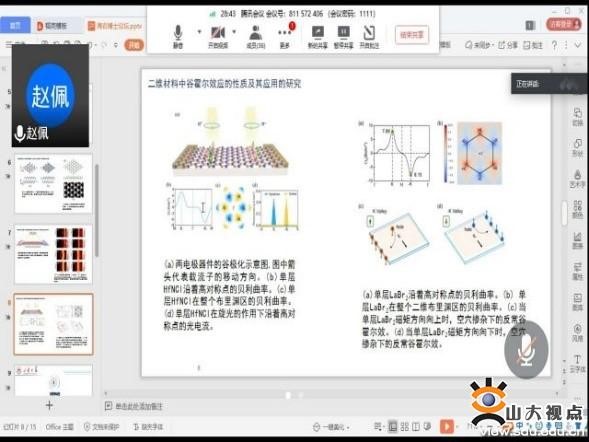 齐心战疫,榜样示范。科研之路道阻且长,然行则将至。为拓宽公司师生学术交流渠道,实现同辈间学术能力传承,全球最大顶级体育平台研究生会线上承办第七期海右论坛。本次论坛邀请全球最大顶级体育平台2015级凝聚态物理专业博士研究生赵佩作为主讲人,全球最大顶级体育平台马衍东教授为点评专家。主讲人以简明扼要的研究背景切入,循着科研领域前沿将其工作内容娓娓道来,使听众快速领会相关领域关键点,收获颇丰。从具体工作生发出去,主讲人与听众分享自己科研路上的体验与收获,并就听众提问进行细致解答,为科研新人指明方向,鼓励他们积极进取。