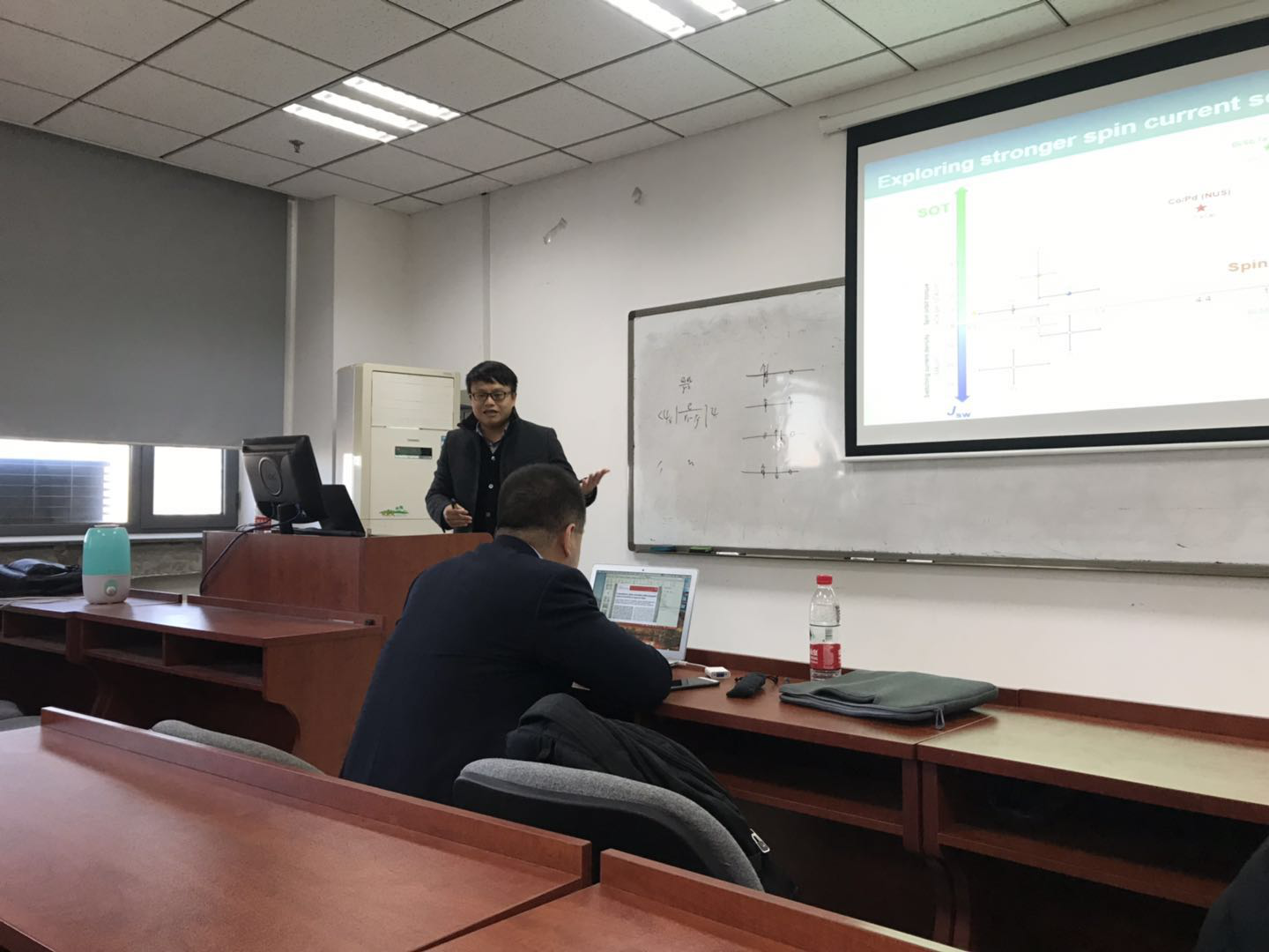 1月15日,受颜世申教授邀请,同济大学东方学者丘学鹏教授访问全球最大顶级体育平台并作题为“磁性异质结中自旋轨道矩的界面和体效应调控”的学术报告。报告由颜世申教授主持。