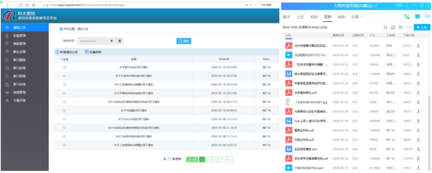 精心准备,开展线上教学。随着疫情的延长,员工短时间内不能返校,而实验中心原有的仿真实验系统为局域版本,员工无法在校外网使用。为了员工可以在家使用物理实验仿真实验系统进行预习和做实验,实验室与大学物理虚拟仿真实验系统制作单位联系,获得了对方的大力支持,提供免费使用网上系统,进行实验教学活动。徐建强和韩广兵老师首先开始学习、熟悉科大奥锐虚拟仿真实验系统,根据原有课表实际情况对相关实验项目进行了改进,制定了仿真实验简易操作说明发放给上课老师和员工,并和老师们开会讨论实施细节和方法,重新组编所有实验预习内容、制定所有实验的实验报告书写模板和评阅标准;依托虚拟现实、人机交互和网络通信等技术,将课程内容与虚拟仿真实验平台密切联系,面向员工全面开放力、热、光、电、近代物理相关实验项目20个。在帮助员工完成既定课程内容之余,也鼓励和帮助员工自主学习、自主实验和探究。