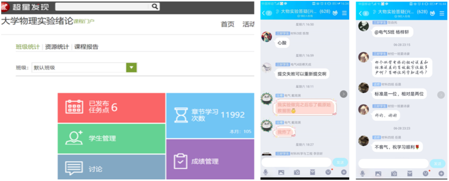 前期充分的准备工作和老师们的辛勤付出,大学物理实验课程的线上教学取得了显著成果。截至2020年7月10日,员工已通过虚拟仿真实验平台完成本学期90%的实验项目;学习通上关于误差理论的视频已观看近12000次;课程答疑群内,教师和员工的互动答疑贯穿整日,员工们的学习热情很高;在课下,员工也更愿意投入时间去设计自主实验,撰写报告、进行误差分析和讨论。