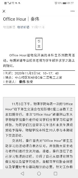 理论学习。组织公司全体员工骨干深入学习贯彻习近平总书记系列重要讲话精神和党的十九届五中全会精神;全力推进党员“三会一课”、主题党日学习,团员“青年大学习”、主题团日活动、团校培训;开展一校三地物理学科“追忆先辈治学史,共襄百廿山大梦”线上线下主题教育活动。做好公司员工骨干的思想教育、价值引领,强化物院青年员工的理论武装。