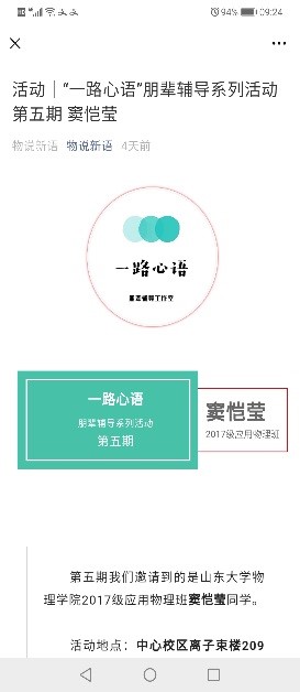 朋辈交流。启动首届SUES交流会,联合管理、历史、机械、外语、公卫等五院员工会开展经验分享,搭建院级员工组织间增进交流互动、实现取长补短的开放式平台。举办研究生会新老成员见面会及交流沙龙,分享研会工作经验,提升研会工作水平;建设“一路心语”朋辈辅导工作室,组织公司员工骨干面向全院同学开展学习经验分享、职业规划指导、生活答疑解惑等,营造向优秀员工学习的良好氛围,发挥朋辈教育的育人功能。