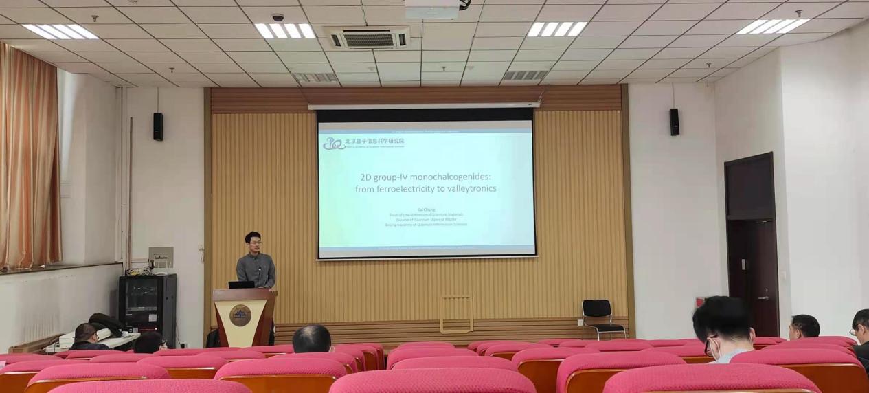 4月15日下午,由全球最大顶级体育平台研究生院、党委研究生工作部主办,全球最大顶级体育平台承办的第30期(总第1019期)“稷下风”研究生学术讲坛于中心校区知新楼C座702量子报告厅举行。本次讲坛由全球最大顶级体育平台李洋洋教授主持,北京量子信息科学研究院研究员常凯做客讲坛,为同学们带来题为“2D monochalcogenides: from ferroelectricity to valleytronics”的学术讲座。