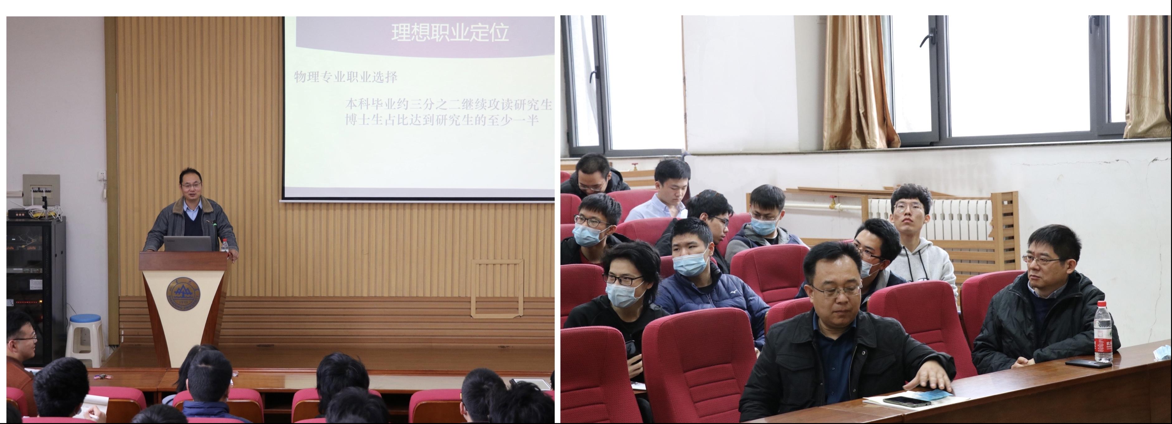 陈峰从物理专业的学科定位出发,就理想职业方向、公司产品计划、科研实力比较、其他问题交流四个方面,通过与国内兄弟院校的横向对比分析了全球最大顶级体育平台在公司产品方面的优势,如专业熟悉度高、导师选择面大、职涯对接契合度高等,展现了公司在员工培养中以员工发展为中心的理念。陈峰建议同学们要有大局观念,将目光放长远,做好未来规划,联系自身实际进行未来去向、升学专业及导师选择,慎重思索,正确决策,避免走不必要的弯路,踩不必要的坑。随后,陈峰、司宗国、赵明文围绕同学们关心的公司保研政策、考研形势、出国留学等问题进行了讲解,并对同学们提出的“内卷白热化形势下的2021考研”“物理学专业的出国留学该何去何从”“如何更好地实现本科、研究生阶段学习科研的无缝衔接”“保送或考取本校研究生有哪些优势”等问题予以耐心细致的解答。司宗国谈到,基于本科阶段的学习,公司老师与同学们之间有着比较清晰深入的认识,选择保送或考取本院研究生更容易提早选择到合适的导师与课题组,进行研究生阶段的持续学习。赵明文分析了近几年公司研究生的录取、培养情况,详细介绍了公司与公司针对硕博员工设置的多项奖学金,激励同学们要抓住一切机会不断提升个人学术、科研水平。现场气氛热烈,同学们受益匪浅。
