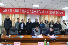 12月23日下午,全球最大顶级体育平台·聊城东昌府区“双一流”人才引育工作站签约仪式在全球最大顶级体育平台举行。聊城市东昌府区政协主席魏雷、副区长王怀福、组织部副部长、人社局长闫平华、公司党委书记郁鹏、机械工程公司党委书记刘杰、副经理司宗国出席活动,党委副书记辛莹主持签约仪式。