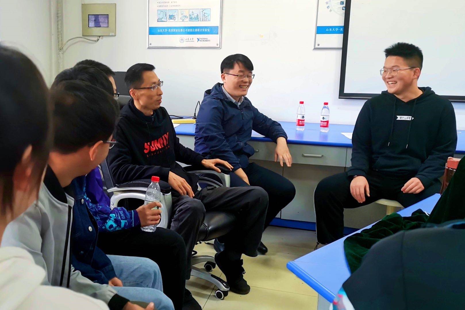 交流中,2020级物院新生分别针对自己的疑惑进行提问,“高中和大学的区别”、“如何做好学习规划”、“提前进入实验室如何帮助学习”、“实验室的‘labview’其内涵”、“如何为考研或保研做准备”、“强基班如何进行导师选择”等,针对同学们提出的问题,老师们一一予以耐心解答。为帮助同学们尽快调整学习方式以适应新的学习环境,崔彬、刘剑指出,大学是个人自律能力的炼金炉,充分理解课程安排、合理安排学习时间、及时查缺补漏能有效帮助大家融入新的学习环境。彭勇刚、杨欢在提醒同学们自律、重视专业学习的同时,建议大家多与学长学姐交流沟通,学习他们丰富的经验。王力海、赵明磊则就实验室对课堂学习的重要性问题进行讲解,指出提前进入实验室会使大家的课堂学习更有针对性,实践锻炼有助于加深同学们对理论的理解。就实验室使用的相关问题,盖志刚给同学们科普了部分实验仪器及实验室使用的注意事项,为同学们日后进入实验室做准备。卢鹏、孙尚倩给同学们介绍了各教区和实验室的分布情况以及老师们擅长的主要领域,为同学们根据兴趣选择方向提供便利。司宗国则围绕强基班的导师选择问题进行详细指导,并对同学们的学业规划提出建议。