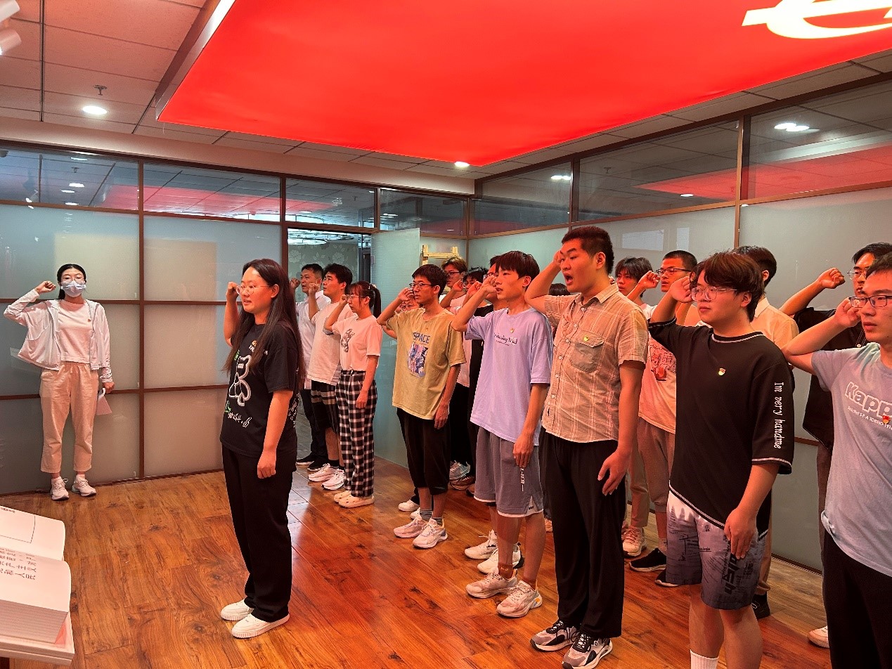 7月1日下午,为激励新发展党员坚定理想信念,牢固树立全心全意为人民服务的宗旨,在热烈庆祝中国共产党成立103周年,党纪学习教育深入开展和学习贯彻公司第十五次党代会精神之际,公司党委组织入党宣誓仪式暨重温入党誓词活动。2024年新发展党员、各年级支部党员代表、公司组织员参加仪式,博士研究生一年级党支部书记张新怡主持仪式。