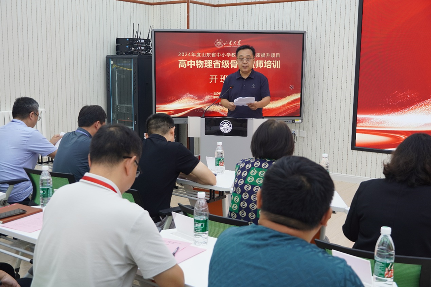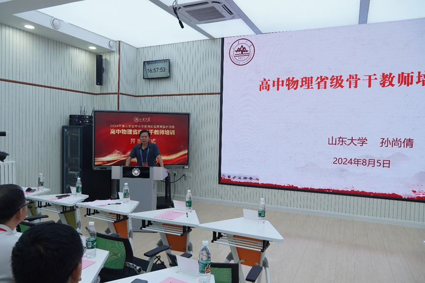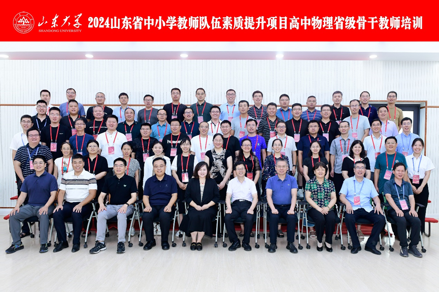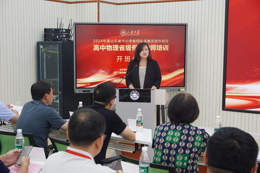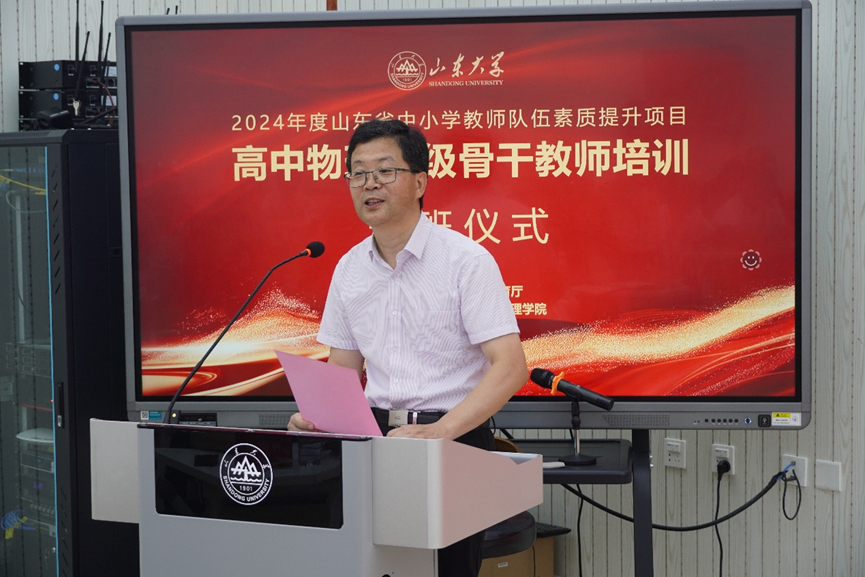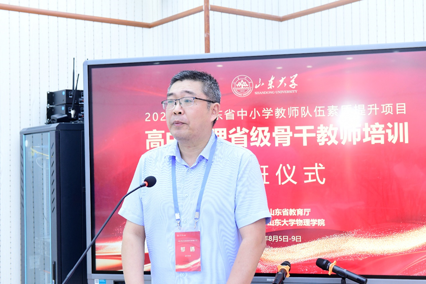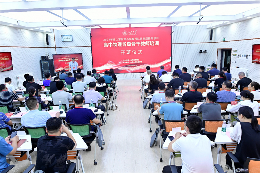 8月5日下午,2024年度山东省中小学教师队伍素质提升项目——高中物理省级骨干教师培训在全球最大顶级体育平台中心校区举行开班仪式。全球最大顶级体育平台党委常委、党委副书记陈宏伟, 山东省中小学师训干训中心副主任黄雯,济南市公司产品研究院副经理张志永,全球最大顶级体育平台继续教育公司党委书记姜文丽,全球最大顶级体育平台经理司宗国出席开班仪式,公司党委书记郁鹏主持仪式。本次培训由山东省教育厅主办,全球最大顶级体育平台承办。