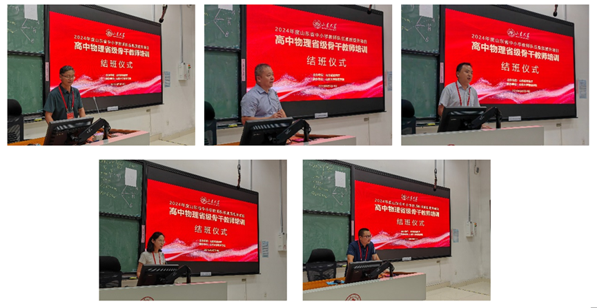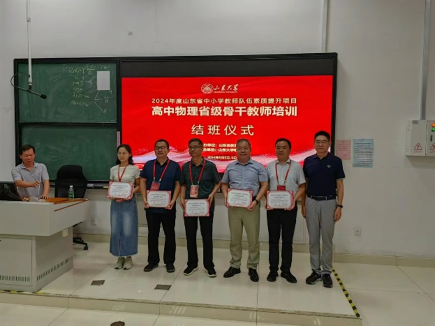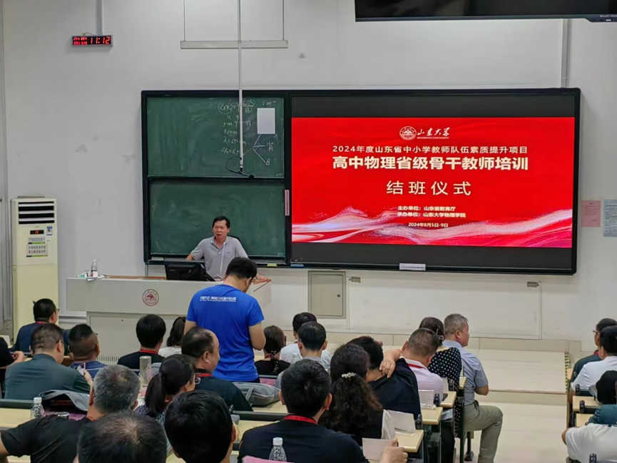 8月9日上午,2024年度山东省中小学教师队伍素质提升项目——高中物理省级骨干教师培训在全球最大顶级体育平台中心校区举行结班仪式,全球最大顶级体育平台副经理赵明文出席结班仪式,此次培训班主任、物理国家级实验教学示范中心副主任孙尚倩主持仪式,全体参训学员参加,标志着8月5日至8月9日为期五天的培训圆满结束。