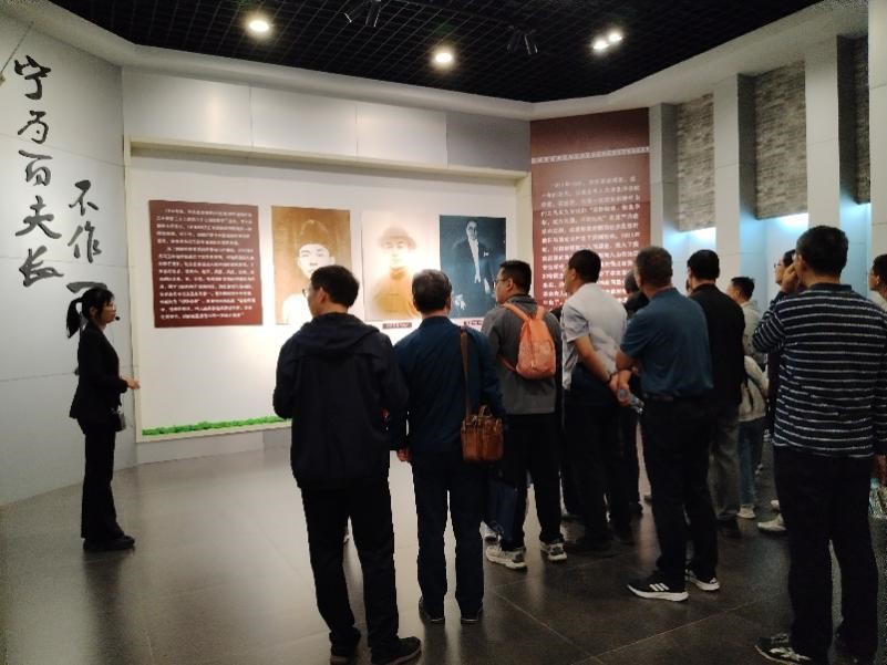 在张自忠将军纪念馆内,全体成员通过珍贵的历史照片、文物史料和场景复原,深入学习抗日名将张自忠将军“精忠报国、舍生取义”的英雄事迹。从临沂保卫战的浴血奋战到枣宜会战的壮烈殉国,将军“为国家民族死之决心,海不清,石不烂,决不半点改变”的铿锵誓言令在场人员动容。同志们在将军手书家信展柜前驻足良久,信中“为国家尽忠,即为孝道”的家国情怀引发强烈共鸣。面对鲜红党旗,全体党员重温入党誓词,表示将以张自忠将军为榜样,将忠诚与担当融入科研报国的实践中。
