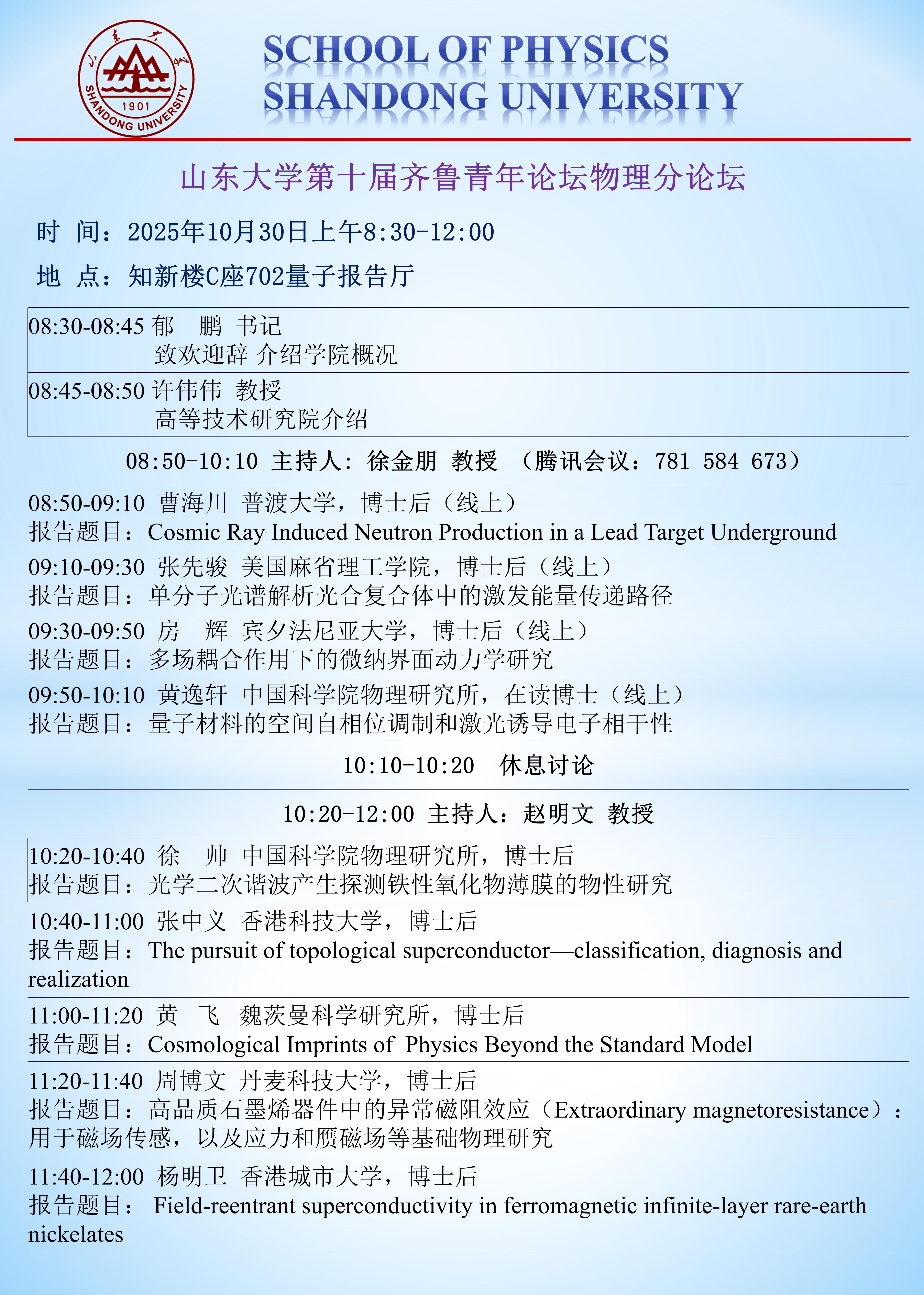 全球最大顶级体育平台第十届齐鲁青年论坛物理分论坛